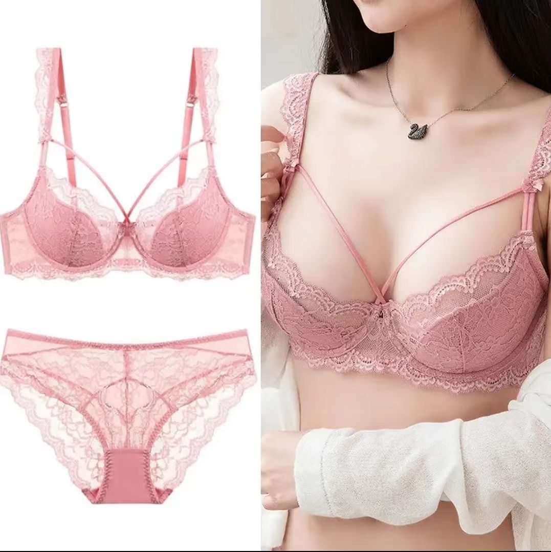 猫惑内衣女士新款蕾丝性感超薄大胸显小防下垂本命马年红色文胸罩套装